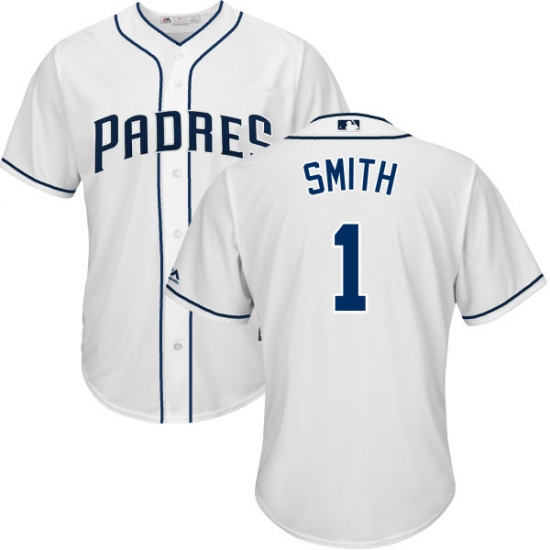 Home>MLB>San Diego Padres>Ozzie Smith>Men's Majestic San Diego Padres #1 Ozzie Smith Replica White Home Cool Base MLB Jersey