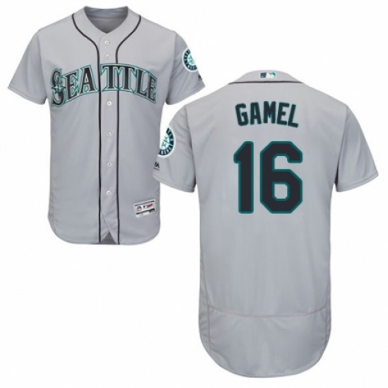 >Men's Majestic Seattle Mariners #16 Ben Gamel Grey Road Flex Base Authentic Collection MLB Jersey