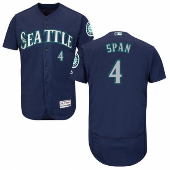 Men's Majestic Seattle Mariners #4 Denard Span Navy Blue Alternate Flex Base Authentic Collection MLB Jersey