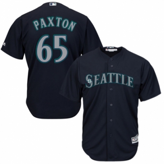 >Men's Majestic Seattle Mariners #65 James Paxton Replica Navy Blue Alternate 2 Cool Base MLB Jersey