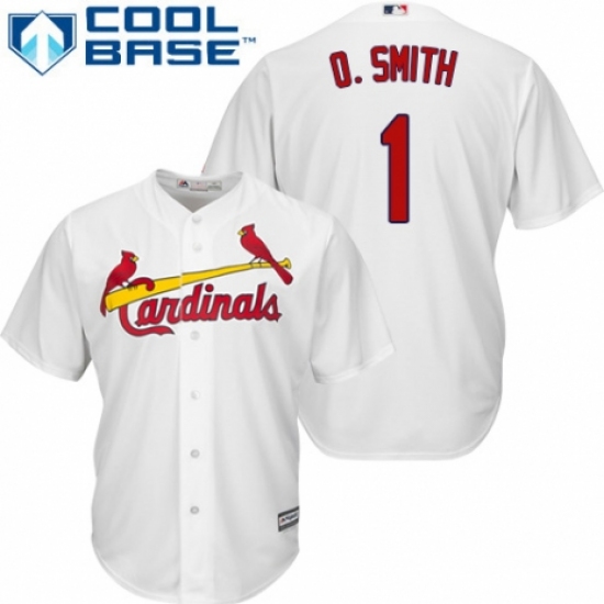 >Men's Majestic St. Louis Cardinals #1 Ozzie Smith Replica White Home Cool Base MLB Jersey