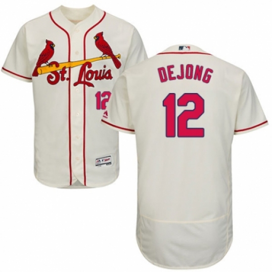 >Men's Majestic St. Louis Cardinals #12 Paul DeJong Cream Alternate Flex Base Authentic Collection MLB Jersey