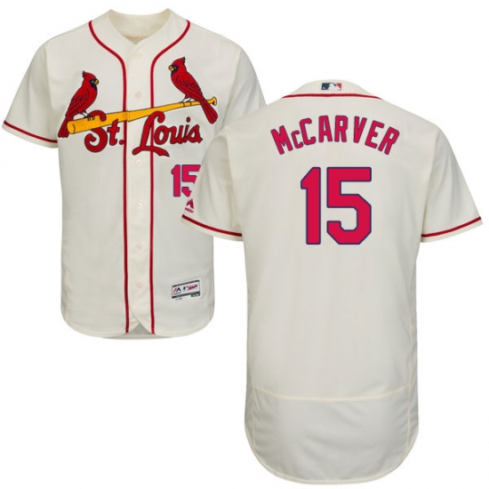 Home>MLB>St. Louis Cardinals>Tim McCarver>Men's Majestic St. Louis Cardinals #15 Tim McCarver Cream Alternate Flex Base Authentic Collection MLB Jersey