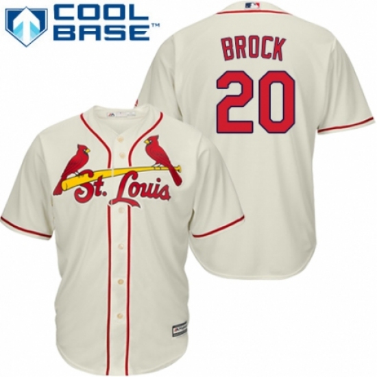 Men's Majestic St. Louis Cardinals #20 Lou Brock Replica Cream Alternate Cool Base MLB Jersey