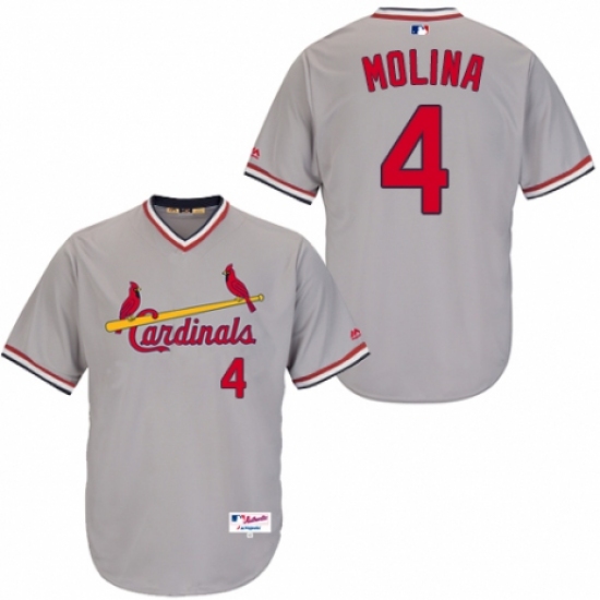 >Men's Majestic St. Louis Cardinals #4 Yadier Molina Replica Grey 1978 Turn Back The Clock MLB Jersey