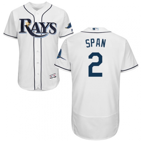Men's Majestic Tampa Bay Rays #2 Denard Span White Home Flex Base Authentic Collection MLB Jersey