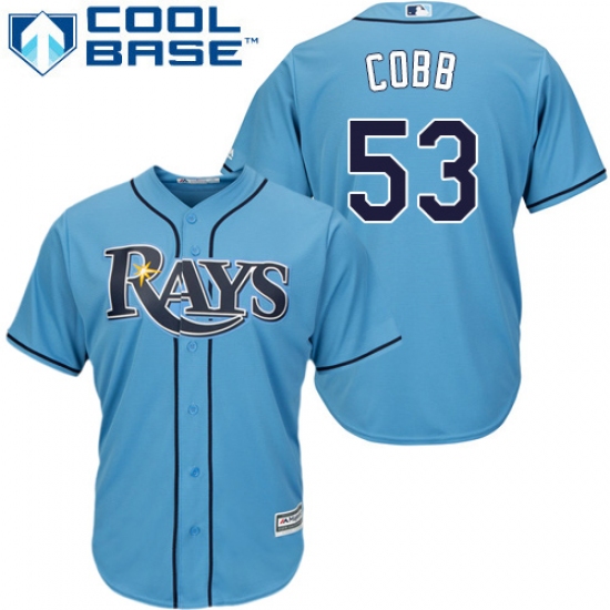Home>MLB>Tampa Bay Rays>Alex Cobb>Men's Majestic Tampa Bay Rays #53 Alex Cobb Replica Light Blue Alternate 2 Cool Base MLB Jersey