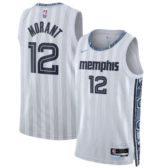 Youth Memphis Grizzlies #12 Ja Morant Swingman White Finished Basketball Jersey - Association Edition