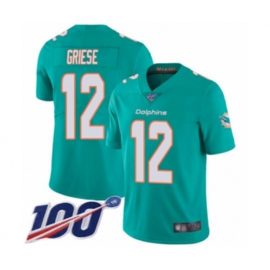 >Men's Miami Dolphins #12 Bob Griese Aqua Green Team Color Vapor Untouchable Limited Player 100th Season Football Jersey