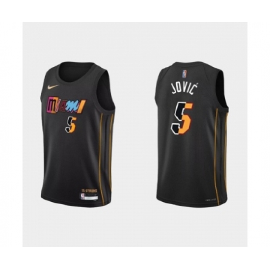 >Men's Miami Heat #5 Nikola Jovic 2022 Black City Edition 75th Anniversary Stitched Basketball Jersey
