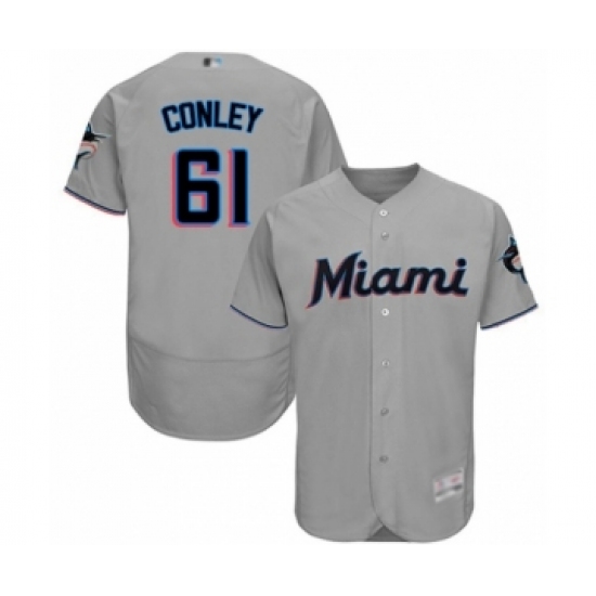 Men's Miami Marlins #61 Adam Conley Grey Road Flex Base Authentic Collection Baseball Player Jersey