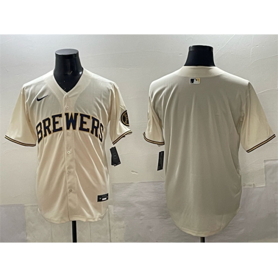 Men's Milwaukee Brewers Blank Cream Home Limited Stitched Jersey