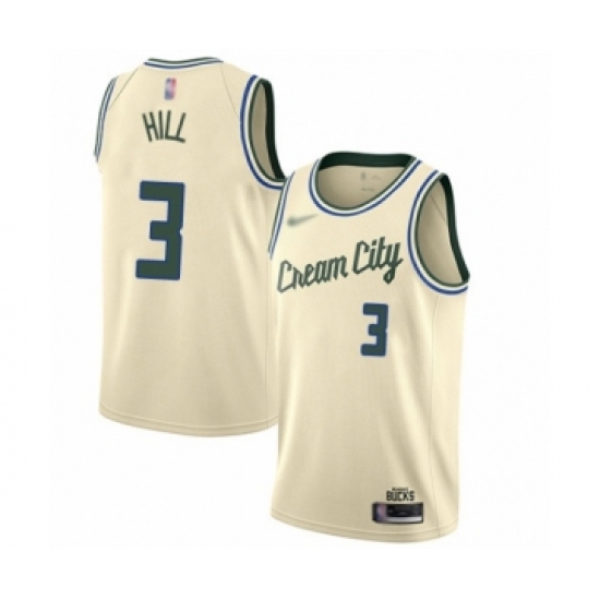>Men's Milwaukee Bucks #3 George Hill Swingman Cream Basketball Jersey - 2019 20 City Edition