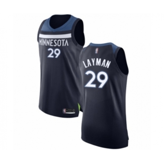 >Men's Minnesota Timberwolves #29 Jake Layman Authentic Navy Blue Basketball Jersey - Icon Edition