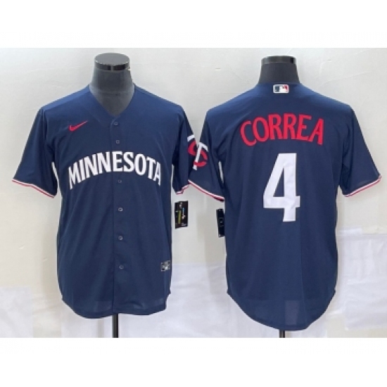 Men's Minnesota Twins #4 Carlos Correa 2023 Navy Blue Cool Base Stitched Jersey