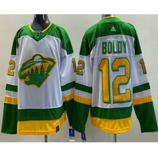 >Men's Minnesota Wild #12 Matt Boldy White 2021 Reverse Retro Authentic Jersey