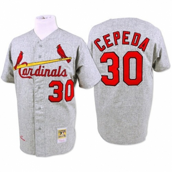 Men's Mitchell and Ness 1967 St. Louis Cardinals #30 Orlando Cepeda Replica Grey Throwback MLB Jersey