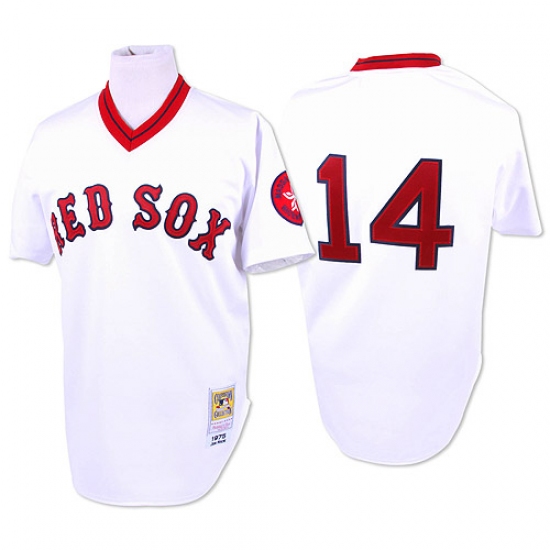 Men's Mitchell and Ness 1975 Boston Red Sox #14 Jim Rice Authentic White Throwback MLB Jersey