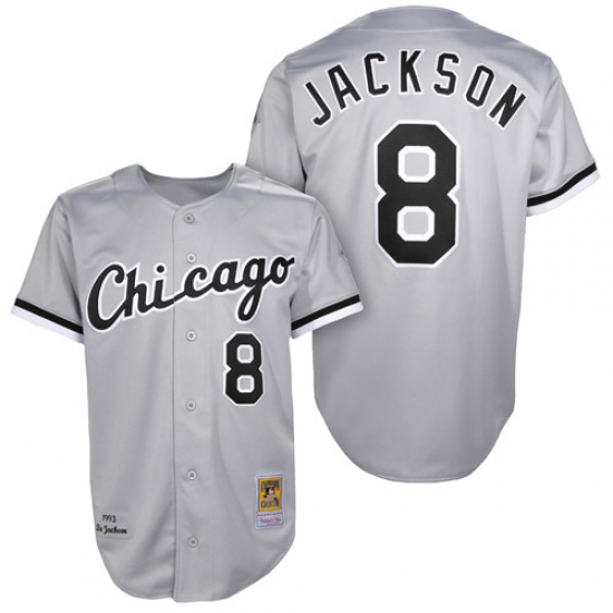Men's Mitchell and Ness 1993 Chicago White Sox #8 Bo Jackson Authentic Grey Throwback MLB Jersey