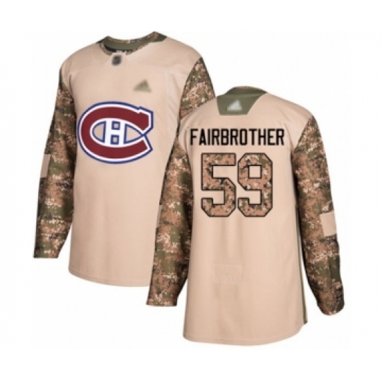 >Men's Montreal Canadiens #59 Gianni Fairbrother Authentic Camo Veterans Day Practice Hockey Jersey