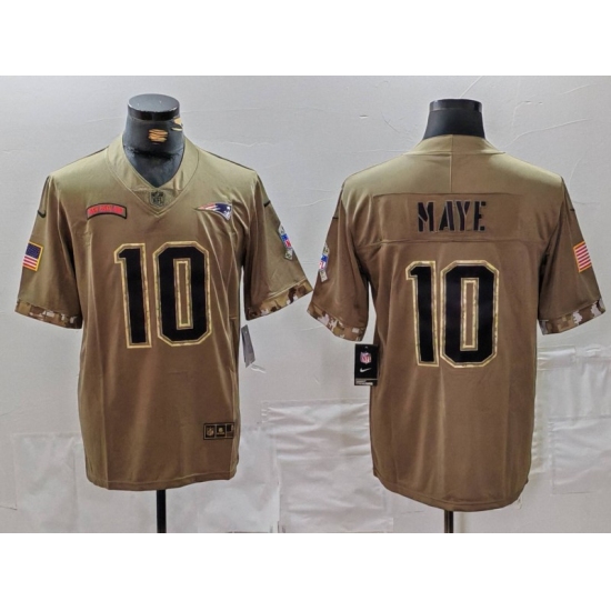 >Men's New England Patriots #10 Drake Maye Olive 2022 Salute To Service Limited Stitched Jersey