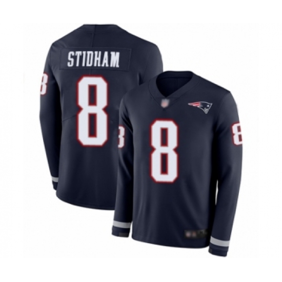 Men's New England Patriots #8 Jarrett Stidham Limited Navy Blue Therma Long Sleeve Football Jersey