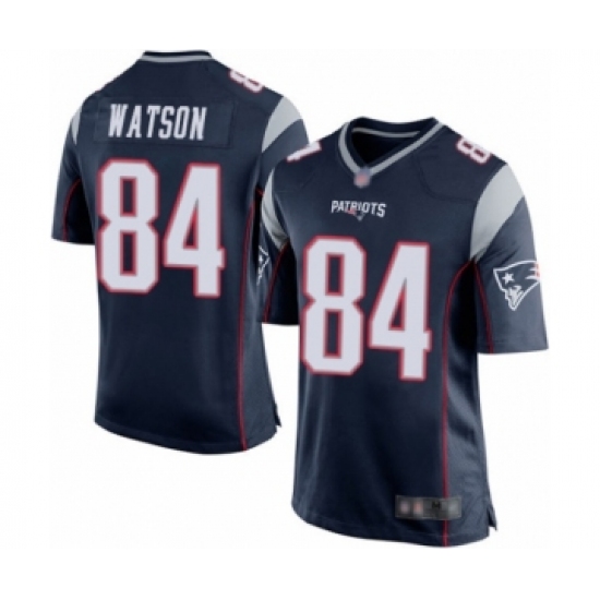 >Men's New England Patriots #84 Benjamin Watson Game Navy Blue Team Color Football Jersey