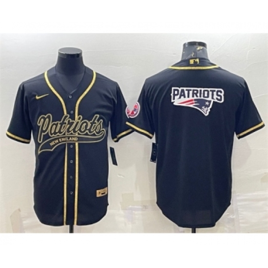 Men's New England Patriots Black Gold Team Big Logo With Patch Cool Base Stitched Baseball Jersey