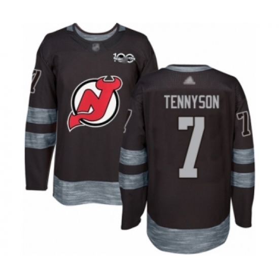 >Men's New Jersey Devils #7 Matt Tennyson Authentic Black 1917-2017 100th Anniversary Hockey Jersey