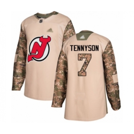 >Men's New Jersey Devils #7 Matt Tennyson Authentic Camo Veterans Day Practice Hockey Jersey