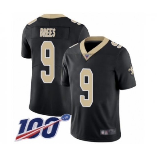 Men's New Orleans Saints #9 Drew Brees Black Team Color Vapor Untouchable Limited Player 100th Season Football Jersey