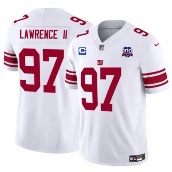 >Men's New York Giants #97 Dexter Lawrence II White 2024 F.U.S.E. With 3-Star C And 100TH Season Vapor Untouchable Limited Stitched Jersey
