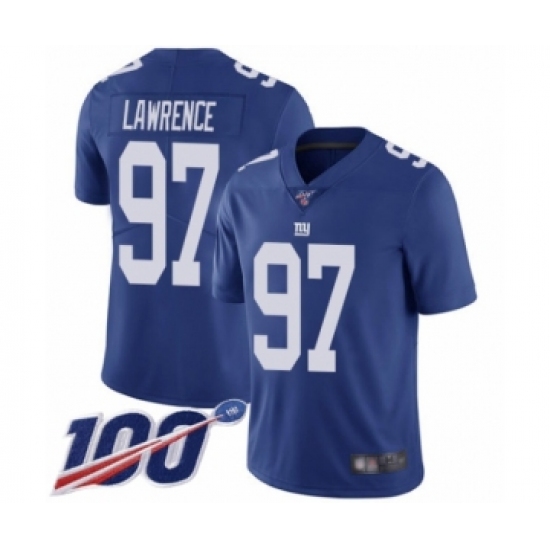 >Men's New York Giants #97 Dexter Lawrence Royal Blue Team Color Vapor Untouchable Limited Player 100th Season Football Jersey