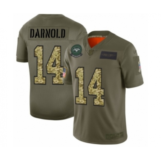 >Men's New York Jets #14 Sam Darnold 2019 Olive Camo Salute to Service Limited Jersey