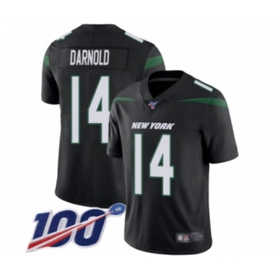 Men's New York Jets #14 Sam Darnold Black Alternate Vapor Untouchable Limited Player 100th Season Football Jersey