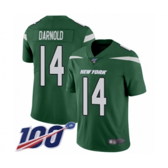Men's New York Jets #14 Sam Darnold Green Team Color Vapor Untouchable Limited Player 100th Season Football Jersey
