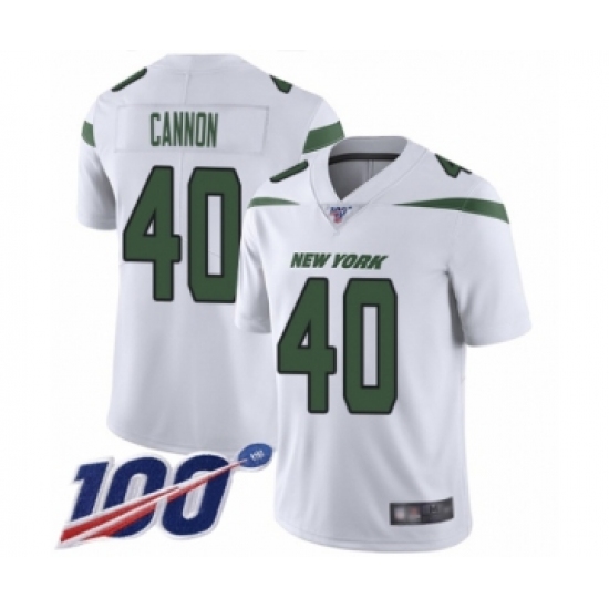 >Men's New York Jets #40 Trenton Cannon White Vapor Untouchable Limited Player 100th Season Football Jersey