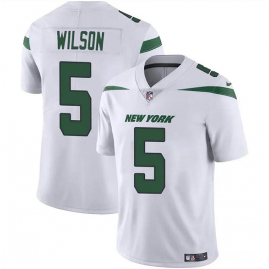 >Men's New York Jets #5 Garrett Wilson White Vapor Untouchable Limited Football Stitched Jersey