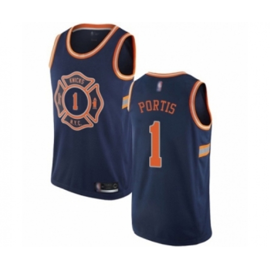 >Men's New York Knicks #1 Bobby Portis Authentic Navy Blue Basketball Jersey - City Edition