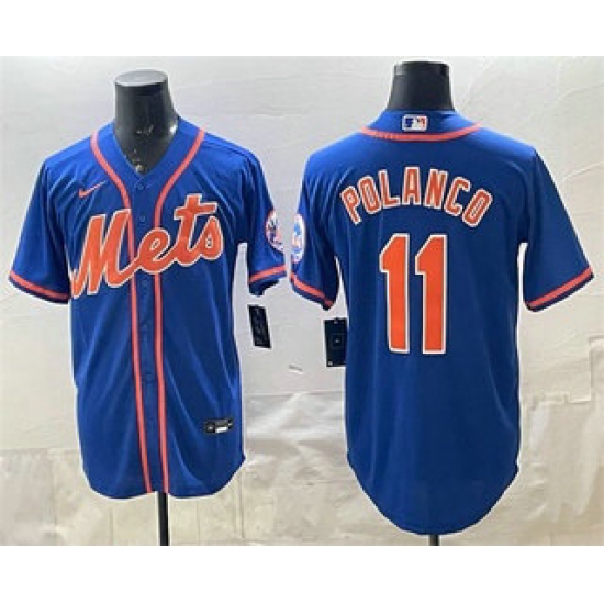 >Men's New York Mets #11 Jorge Polanco Blue Cool Base Stitched Jersey