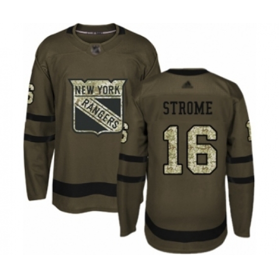 >Men's New York Rangers #16 Ryan Strome Authentic Green Salute to Service Hockey Jersey