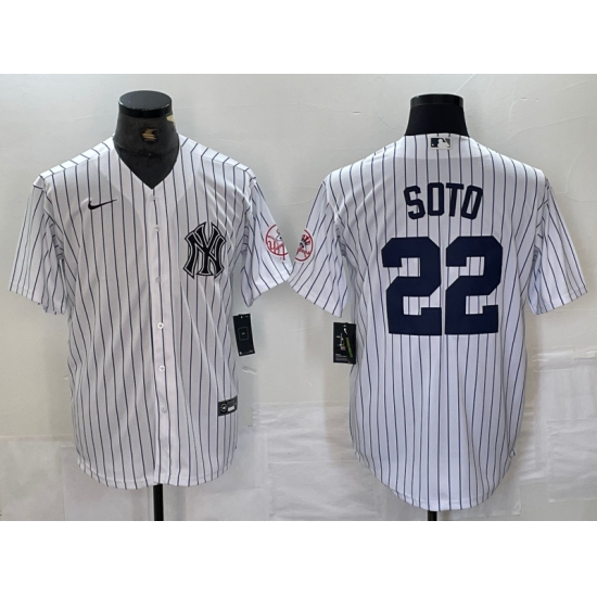 >Men's New York Yankees #22 Juan Soto Name White With 2024 Cool Base Stitched Jersey