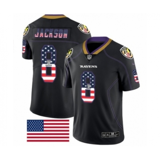 Men's Nike Baltimore Ravens #8 Lamar Jackson Limited Black Rush USA Flag NFL Jersey
