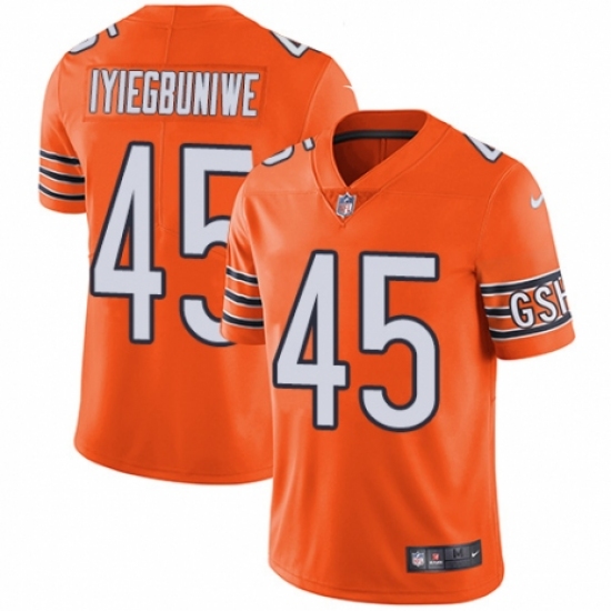 >Men's Nike Chicago Bears #45 Joel Iyiegbuniwe Elite Orange Rush Vapor Untouchable NFL Jersey