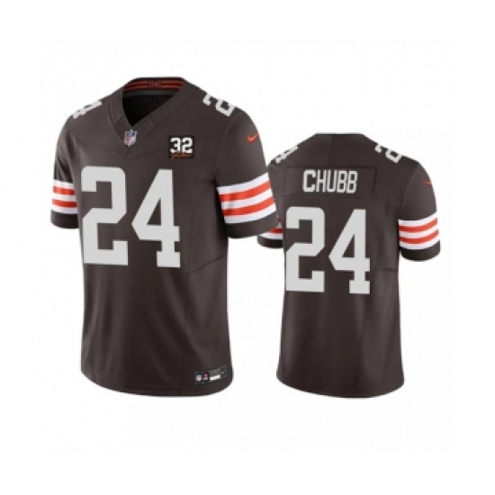 >Men's Nike Cleveland Browns #24 Nick Chubb Brown 2023 F.U.S.E. Jim Brown Memorial Vapor Untouchable Limited Football Stitched Jersey