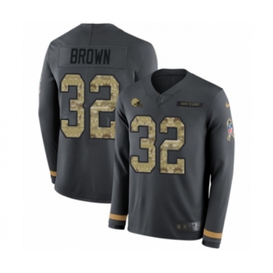 Men's Nike Cleveland Browns #32 Jim Brown Limited Black Salute to Service Therma Long Sleeve NFL Jersey