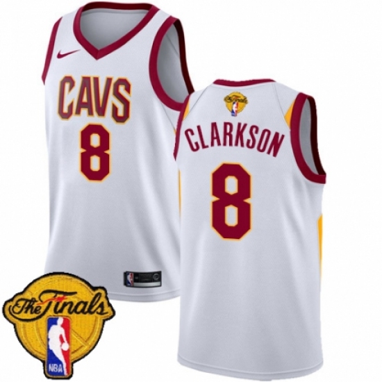 Men's Nike Cleveland Cavaliers #8 Jordan Clarkson Swingman White 2018 NBA Finals Bound NBA Jersey - Association Edition