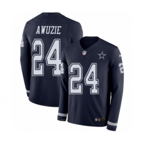 >Men's Nike Dallas Cowboys #24 Chidobe Awuzie Limited Navy Blue Therma Long Sleeve NFL Jersey