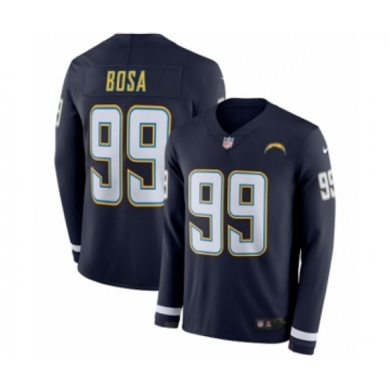 >Men's Nike Los Angeles Chargers #99 Joey Bosa Limited Navy Blue Therma Long Sleeve NFL Jersey