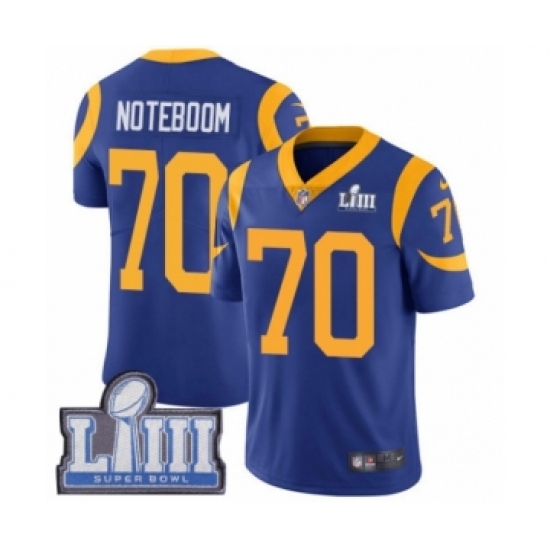 >Men's Nike Los Angeles Rams #70 Joseph Noteboom Royal Blue Alternate Vapor Untouchable Limited Player Super Bowl LIII Bound NFL Jersey